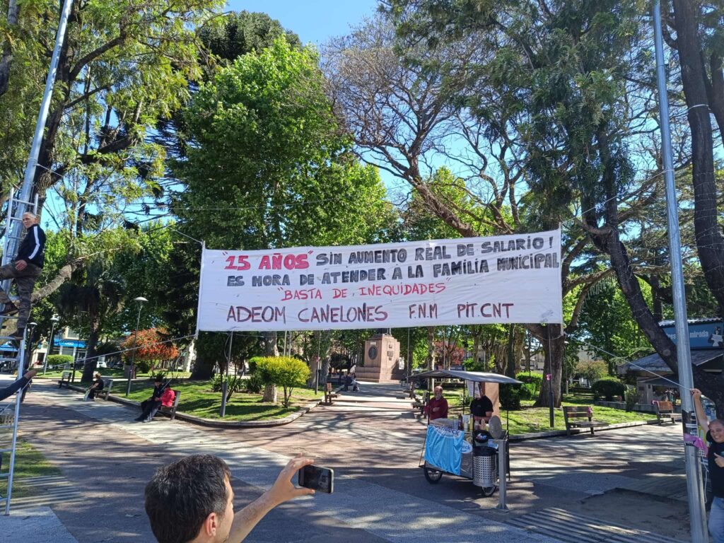 Uno de los desacuerdos con la Intendencia de Canelones es el rechazo al aumento salarial anual propuesto por las autoridades de la comuna que propone 1.500 pesos de aumento para los salarios más bajos y 1.000 pesos para salarios de 50 mil pesos en adelante. El gremio plantea 10 mil pesos de incremento salarial para los sueldos base, y afirman que hace 15 años los municipales no tienen aumento real de salario. Asimismo son críticos con los 1.250 millones de pesos que la comuna dedica a 57 cargos de confianza, según afirman.