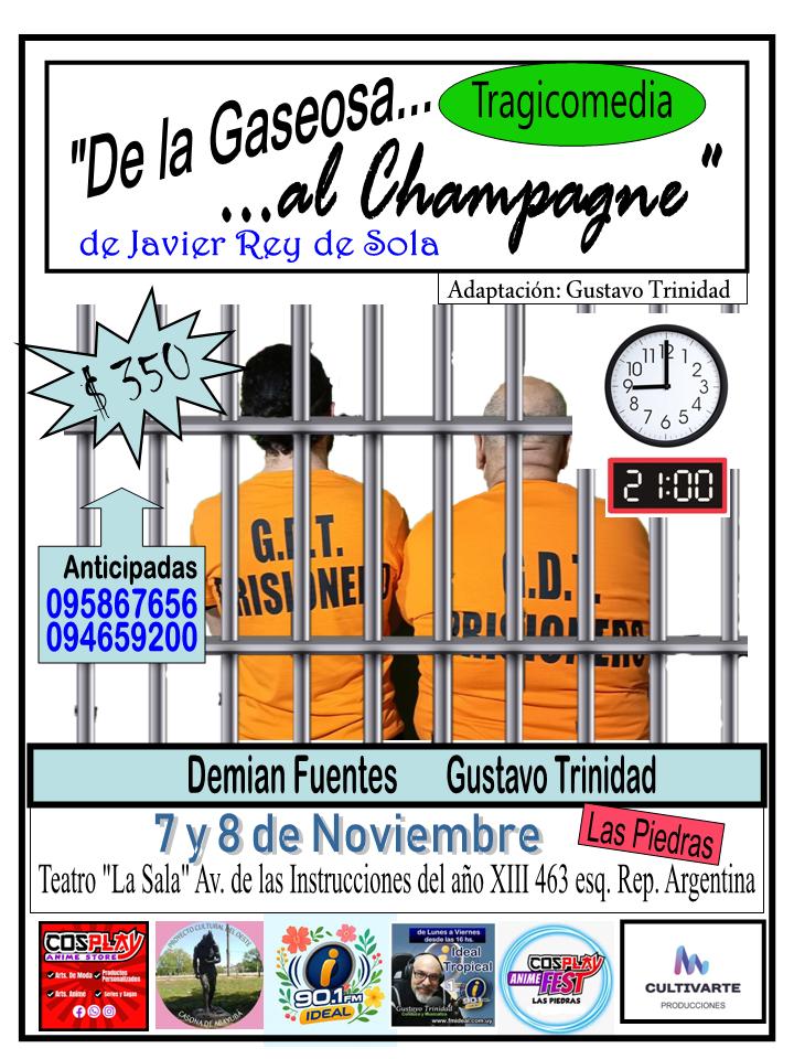 *Recibimos a Gustavo Trinidad, porque la obra de teatro “De la gaseosa al champagne” de Javier Rey de Sola se presenta el 7 y 8 de noviembre a las 21 hs. en Teatro “La Sala” de Las Piedras.
