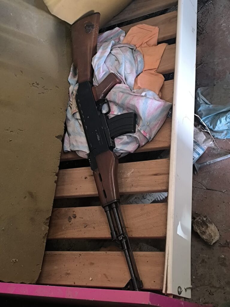 • Dos armas de fuego: una pistola calibre 9 mm con municiones y un rifle modelo AK47 calibre .22 sin municiones.