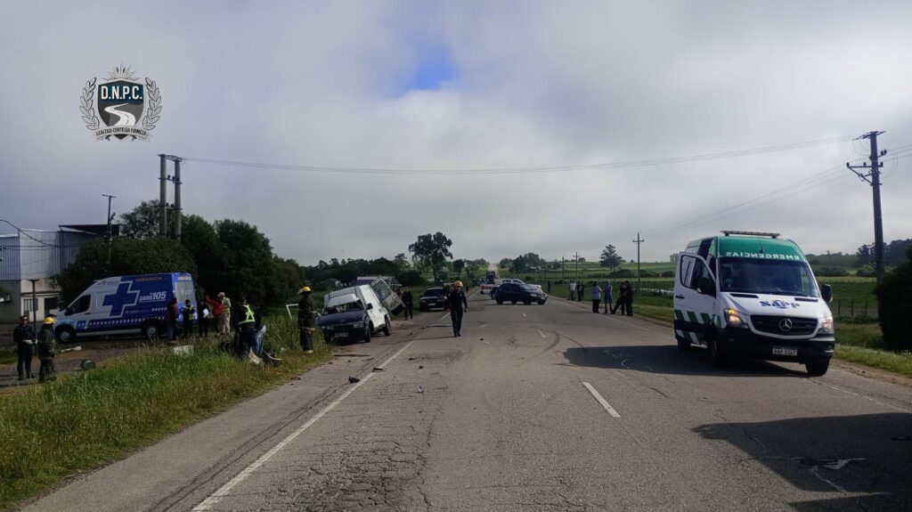 Según informaron este martes la Policía Caminera y la Policía de Canelones, un choque fronto-lateral entre una camioneta y un auto terminó con nueve personas heridas y un fallecido en la ruta 7, en la zona de Tala. Ocurrió a la altura del kilómetro 82 de la ruta 7, sobre las 8:20 horas. La camioneta Fiat Fiorino que circulaba rumbo a Fray Marcos (Florida) intentó doblar a la izquierda e impactó con un auto Chevrolet que circulaba en sentido contrario.